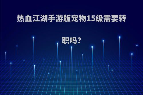 一,热血江湖手游版宠物15级需要转职吗?