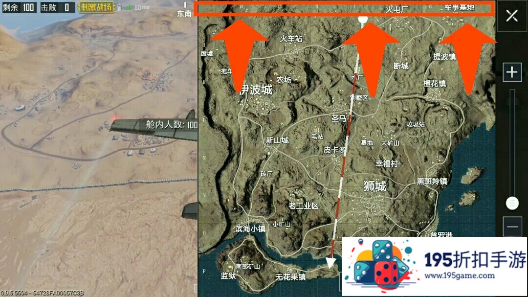 如图所示,三个箭头指向的方框区域就是刺激战场“长城”建筑所在地,当航线经过这里的时候我们可以直接选择跳伞去这里,如果航线没有经过的话,从底下直接上去恐怕有点儿难度,不过游戏君表示再难也不是事,也许今晚一觉醒来,明天早上就有人发教程直接从底下飞上去的
