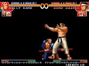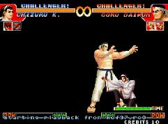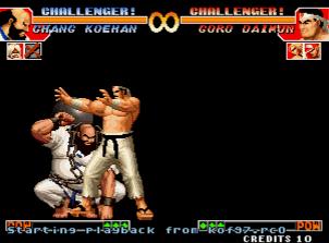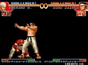 这两人算是出场率很高的,大门在抓天地返之后使用小跳+反摇B+震百试不爽,对方绝对不会逃脱,另外如果在角落里为了防止八神起身抓屑风也可以使用后后+反摇D+震。这样就避免失误被打一套。